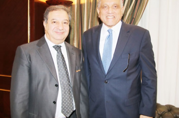 الاستاذ عوني الكعكي سفير مصر السابق في لبنان حسين ضرار في زيارة تهنئة . ودار