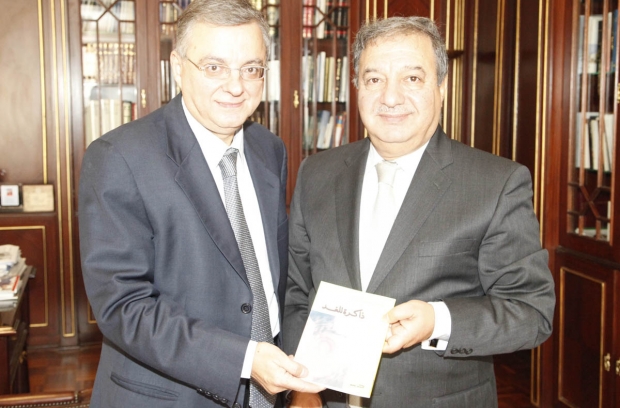 النقيب عوني الكعكي بالكتاب وطلب من مؤلفه الزميل كميل عبد الله ان يبقى يمد