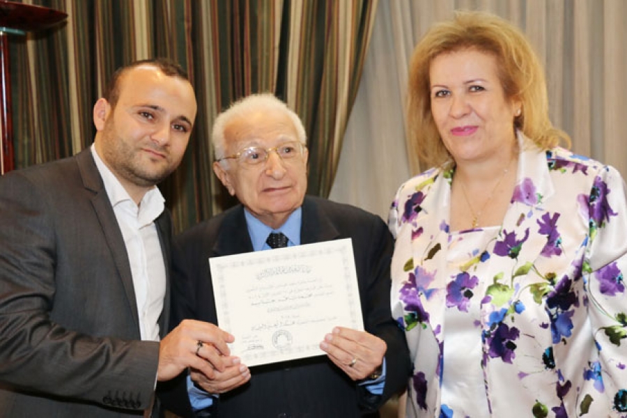النقيب محمد البعلبكي والدكتورة فيّاض براءة الجائزة وشيكين بقيمتها الى المستحقيْن